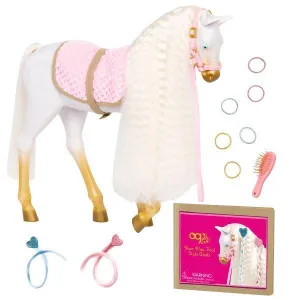 A plush Goldendoodle dog to play with your Our Generation doll. The dog has jointed legs. He comes with a collar and leash. Doll not included.